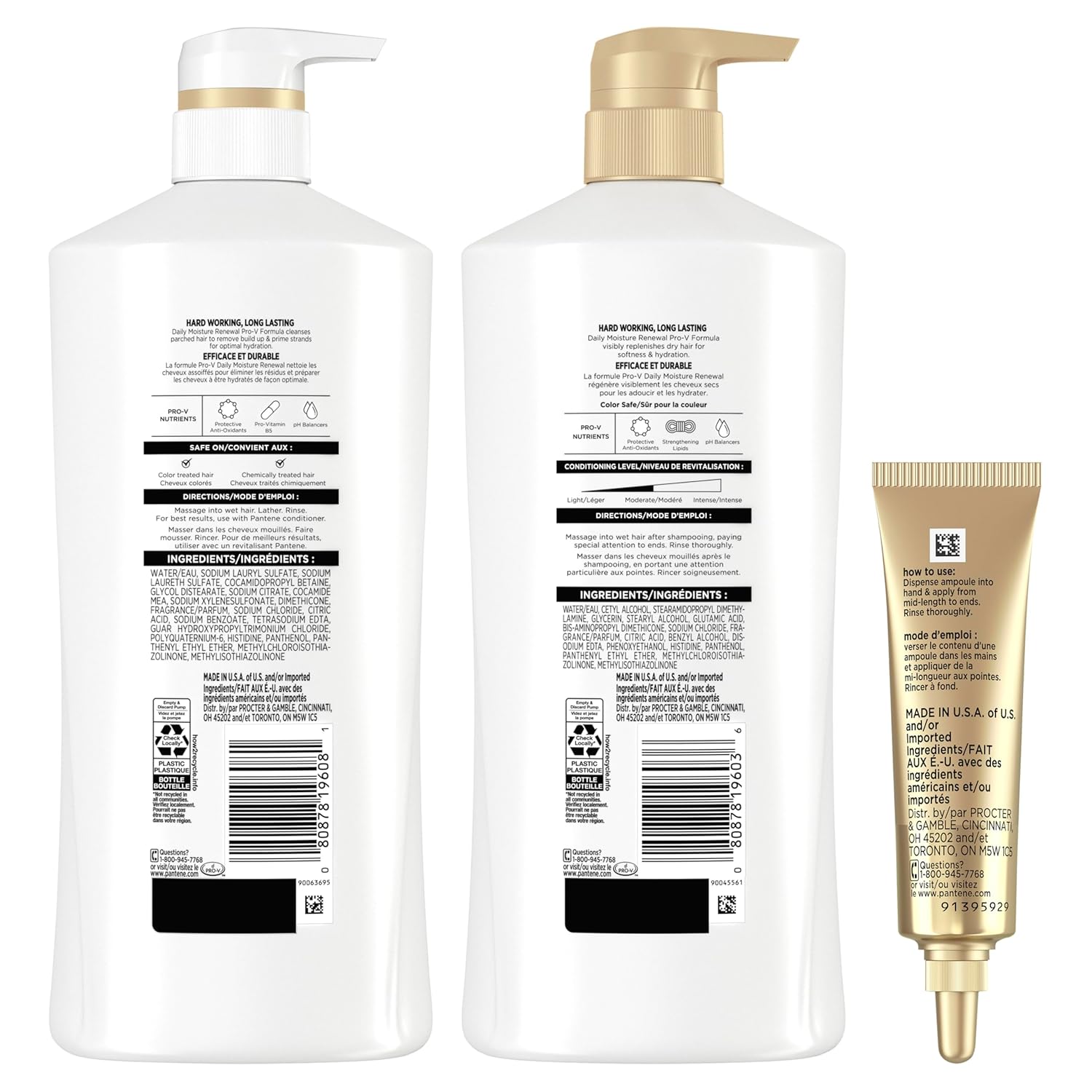 - LUXURY HAIR REPAIR WITHOUT THE LUXURY PRICE: The Pantene Daily Moisture Dual Pack + Rescue Shot includes a shampoo and conditioner duo that cleanses and hydrates dry, damaged hair by removing dirt and impurities while adding moisture for softness and manageability. Get salon-quality results with Pantene's affordable hair repair solution.