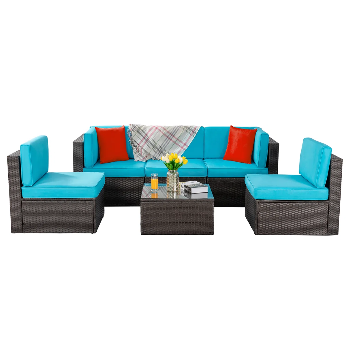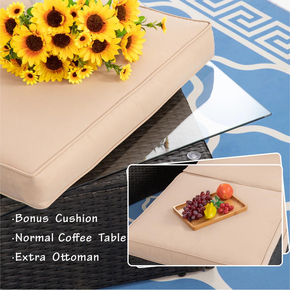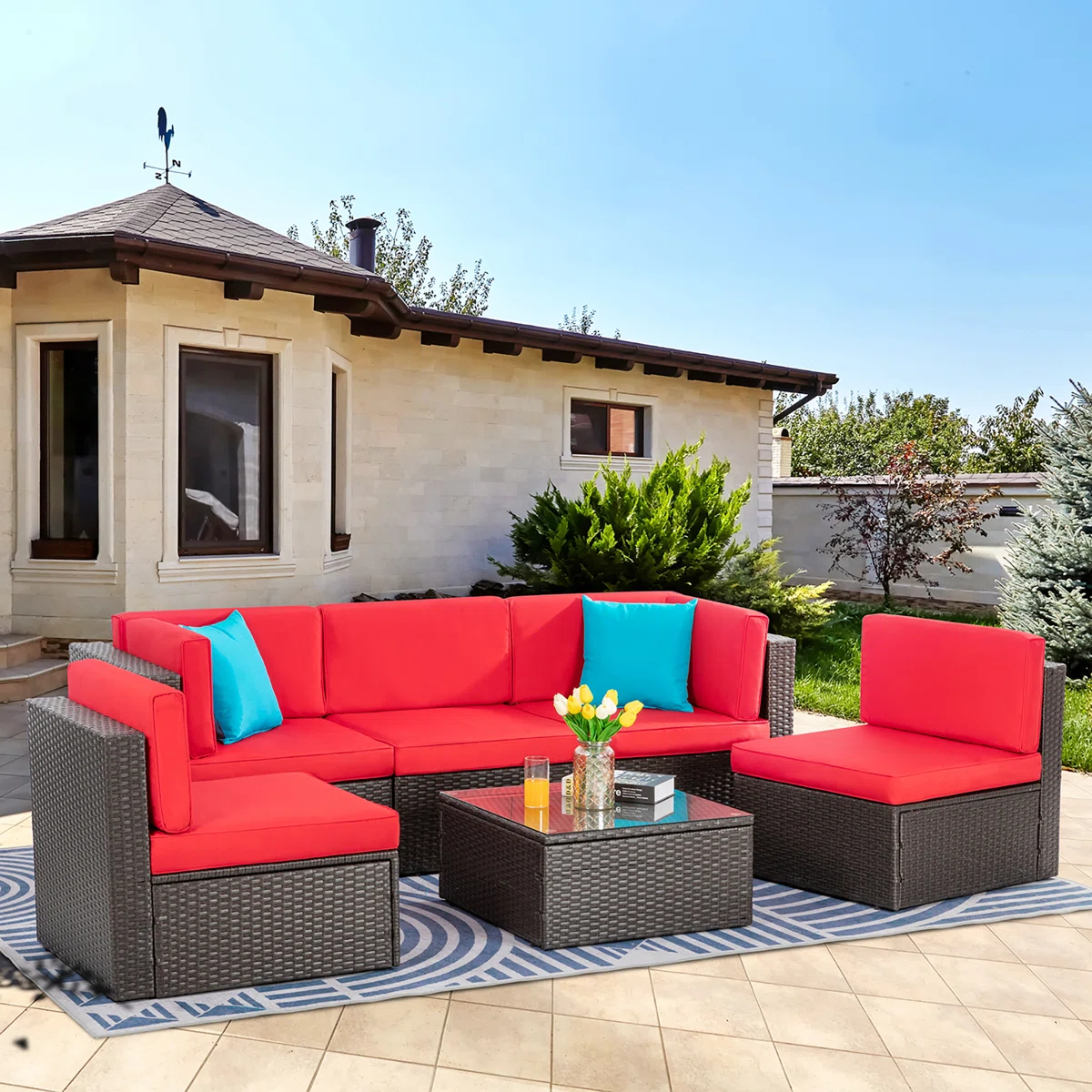 - High-Quality Rattan & Frame, High-quality materials, environmentally friendly; durable, and not to be broken. The sturdy and resilient UV coated PE wicker is tightly woven over a sturdy, powder-coated solid steel frame which provides strong support you can rely on. This outdoor sofa set is designed for weather resistance, and low maintenance ensuring it will last long.