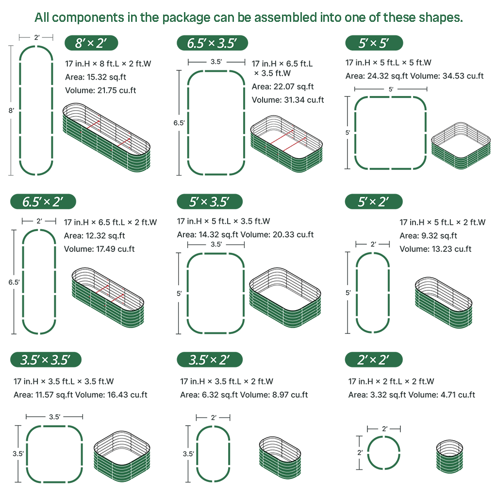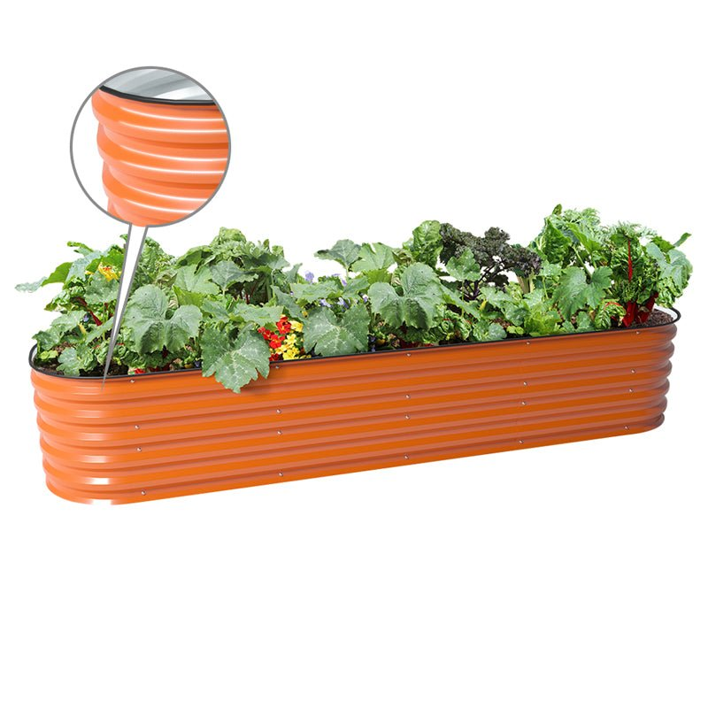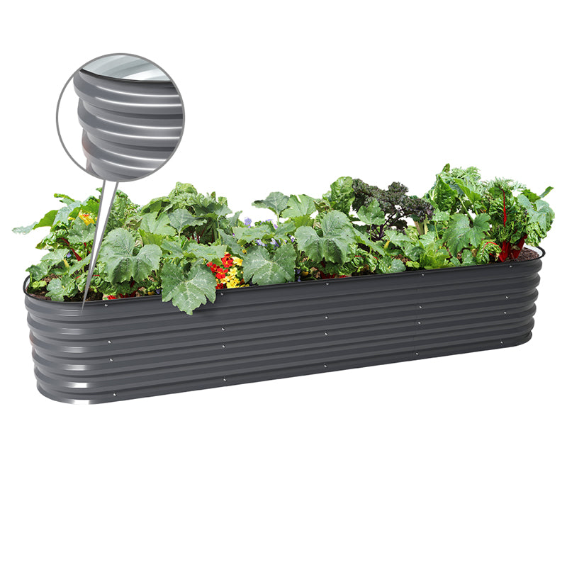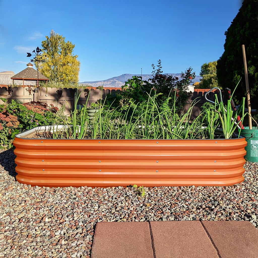 The 17" tall 8x2 metal planter boxes are the most popular garden beds among all Vegega products. These metal raised planters allow you to create a beautiful and neat garden quickly. The 17" tall design reduces the effort needed for plants to grow more easily and helps you achieve a successful garden.