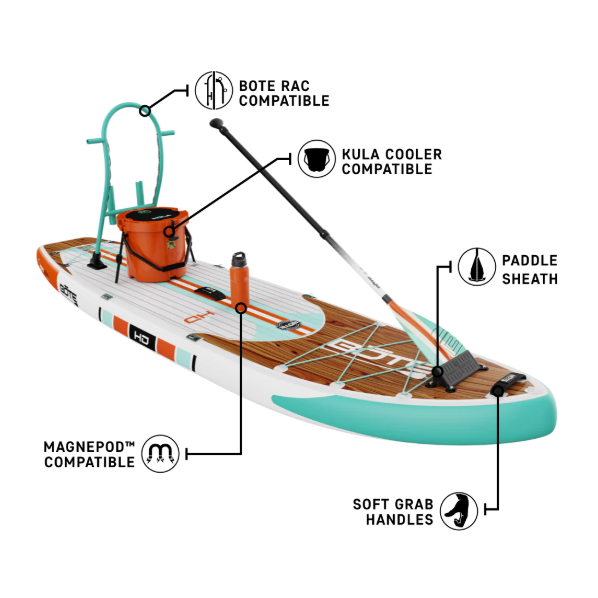 The HD was crafted to be the "do everything" board. With an entry rocker, wide base, and compatibility with BOTE rac systems this board is ready for any adventure.